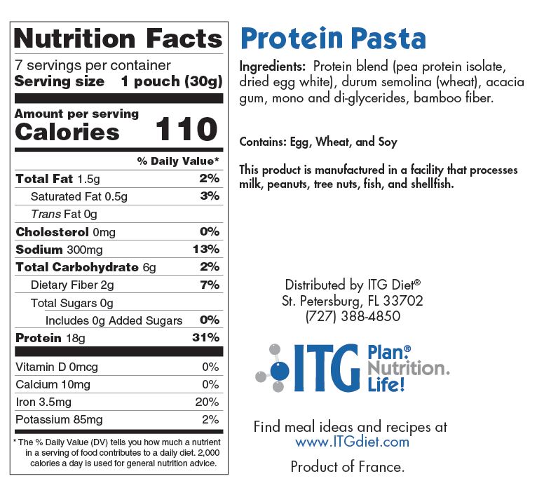 NEW! With only 6 carbs per serving and 18 grams of protein, you can enjoy pasta again and stick to your plan! Simple to make - just boil water and place perforated pouch in water to cook. Takes just under 10 minutes to cook, and add oil, garlic, or Walden Farms Tomato Basil Sauce to make your own protein-packed pasta dish. Non-Limited ITG Food.