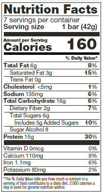 Ingredients: Protein blend (soy protein isolate, milk protein concentrate, acid casein, whey protein isolate, milk protein isolate, calcium caseinate), hydrolyzed collagen, invert sugar, glycerin, maltitol syrup, vegetable oil (palm kernel, peanut, sunflower), sugar, sorbitol, natural and artificial flavors, fructooligosaccharide, peanut butter, cocoa powder (processed with alkali), water, partially defatted peanut flour, soy lecithin, salt, sodium phosphate, tocopherols, sucralose (non-nutritive sweetener).