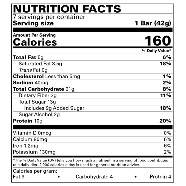 Protein Blend (Calcium Caseinate [From Milk], Soy Protein Isolate, Whey Protein Isolate, Casein), Sugar, Corn Syrup, Raisins, Fractionated Palm Kernel Oil, Polydextrose, Molasses, Nonfat Milk, Glycerine, Roasted Soybeans, Rolled Oats, Water, Soy Lecithin, Soybean Oil, Brown Sugar, Maltodextrin, Nonfat Yogurt Powder (Cultured Nonfat Milk), Cinnamon, Coconut, Honey, Dextrose, Canola Oil, Cornstarch, Natural Flavor, Titanium Dioxide (For Color).